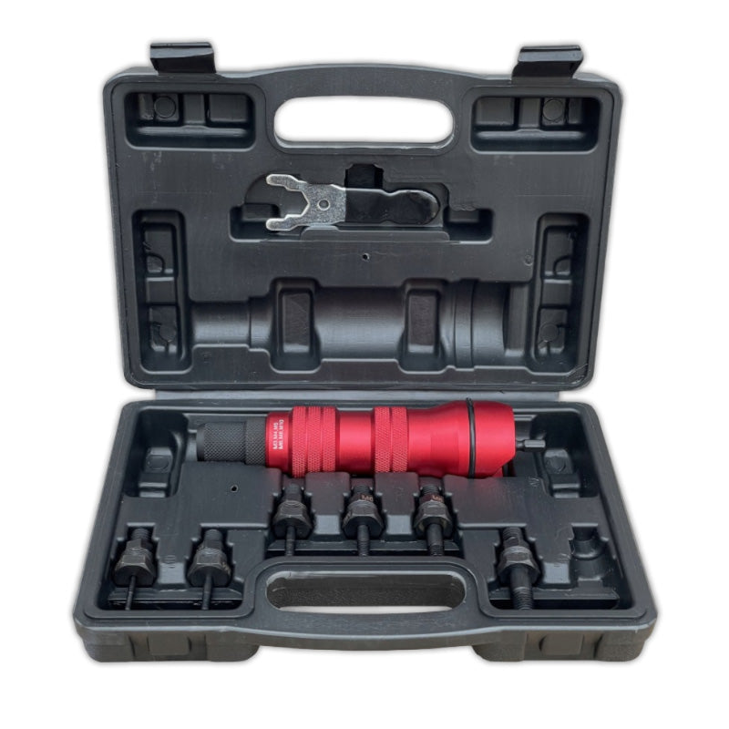 Adapter za zakivne matice omogućuje vam jednostavno i brzo pričvršćivanje zakivnim maticama uz pomoć standardnog odvijača ili bušilice. Izrađen od čelika, ovaj alat ima izuzetno čvrstu konstrukciju i dolazi u praktičnom plastičnom koferu za lak transport i skladištenje.