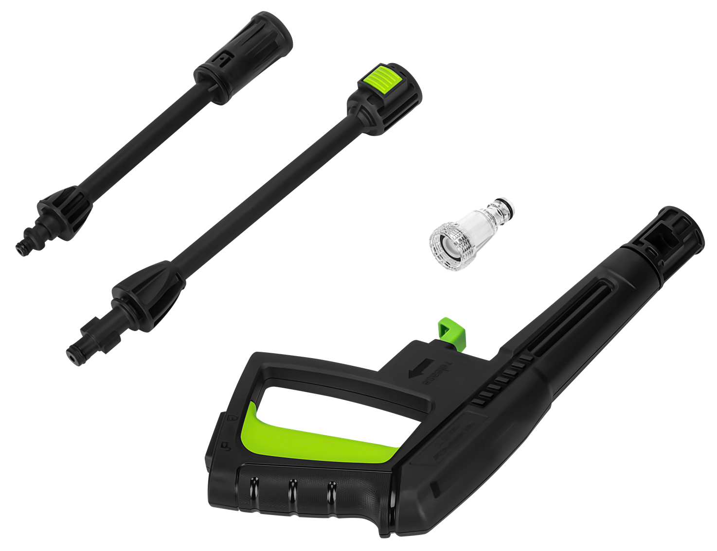 Veliki kotači, ergonomska ručka i podesiva mlaznica čine ga idealnim za auta, terase, vrtni alat i kućanske površine. Čvrsto kućište omogućuje rad na otvorenom u svim uvjetima.