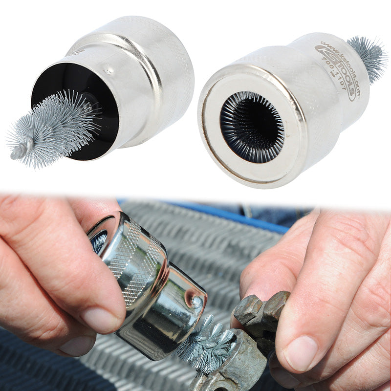 Četka za poliranje idealna je za uklanjanje kontaktnih korozija i kiselih naslaga s polova akumulatora i priključnih stezaljki.