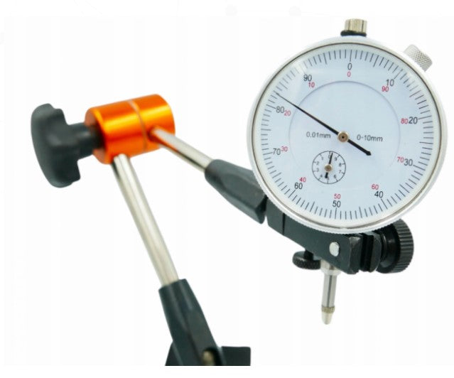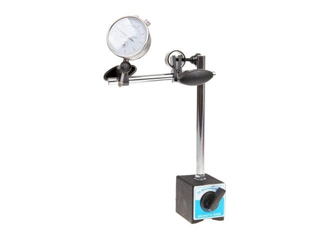 Set za mjerenje odstupanja i provjeru udaranja diskova s brojčanikom. Magnetni držač omogućuje bolju prilagodbu i veću točnost. Kontaktna točka otkriva najmanje odstupanje zabilježeno na komparatoru.
