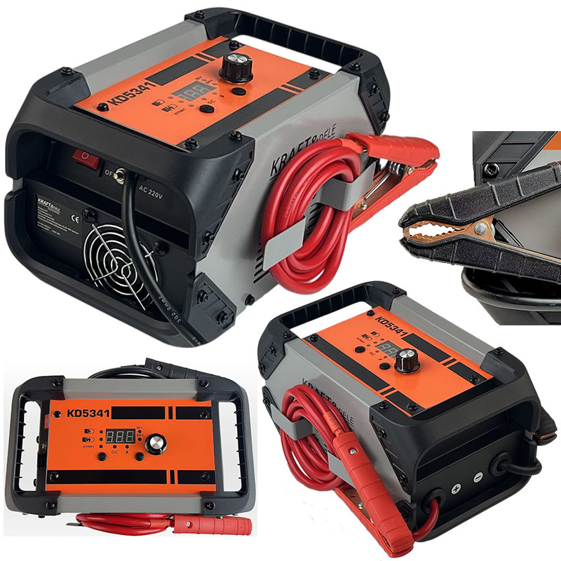 KRAFT&DELE je moderan i snažan punjač akumulatora s funkcijom pomoći pri pokretanju vozila, namijenjen osobnim automobilima, SUV vozilima, motociklima i lakim gospodarskim vozilima. Zahvaljujući naprednoj inverterskoj tehnologiji, uređaj postiže do 90 % učinkovitosti, osiguravajući brzo, stabilno i sigurno punjenje akumulatora kapaciteta od 20 do 500 Ah.