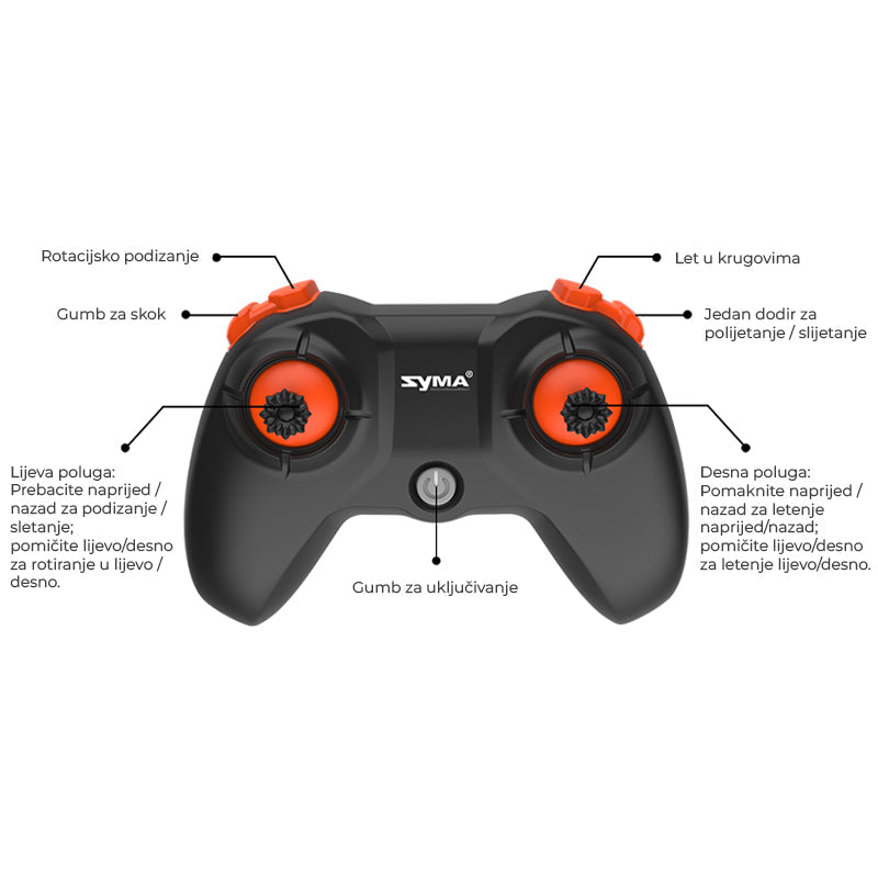 - Napajanje drona: 3,7 V, punjiva baterija od 300 mAh (uključena)