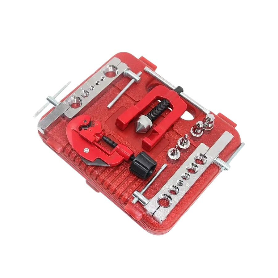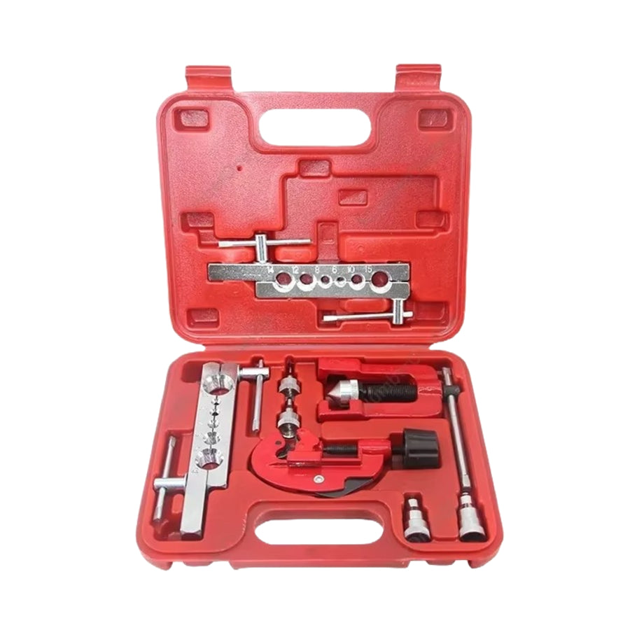 Kompletan set alata za proširenje i pertlanje cijevi, idealan za rad s bakrenim, aluminijskim i mesinganim cijevima. Prikladan za popravke kočnica, instalacije klima uređaja, centralnog grijanja, hladnjaka i ostalih sustava gdje je potrebna precizna obrada cijevi.