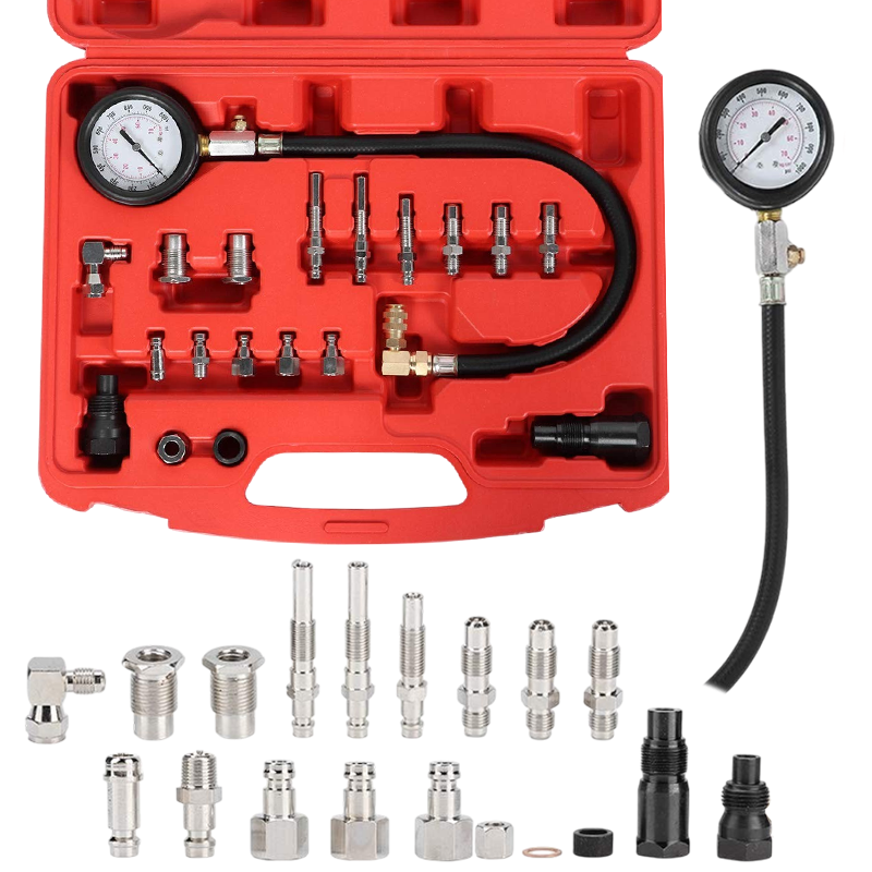 Ovaj set namijenjen je preciznom mjerenju tlaka kompresije u cilindrima dizelskih motora. Praktičan je i jednostavan za korištenje, a omogućuje mjerenje kroz žarnice ili injektore, čime osigurava svestranost i kompatibilnost s većinom vozila.