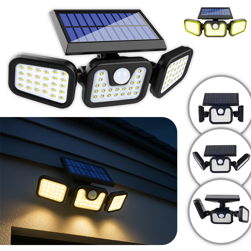 Ovaj model ima tri podesiva panela koji omogućuju optimalno usmjeravanje svjetla, kao i senzor pokreta i sumraka za automatski rad. Idealna je za vanjsku upotrebu – dvorišta, vrtove, prilaze, parkirališta i javne prostore.