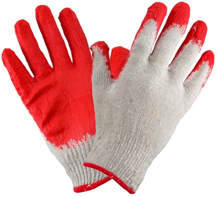 Rukavice pletene od mešavine pamuka i poliestera, bešavne. Čvrsta guma zalepljena na dlan rukavica omogućava dodatnu bezbednost u radu sa grubim materijalima.